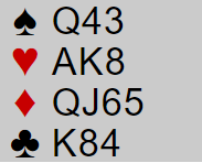 Ingen kan vite med sikkerhet hva som er riktig. Jeg tror imidlertid det oftere er riktig å passe med denne flate hånden. Det behøver selvsagt ikke være best i 3NT. Makker har imidlertid bare foreslått 3NT, og han kan godt ha en dårlig dobbelton i spar eller kløver, eller tre små i en av de fargene. Men er 4 hjerter noe særlig bedre da? Det er ikke sikkert nord har 5-3-3-2 fordeling en gang. Likevel, sjansen for at 3NT er minst like bra som 4 hjerter må være ganske stor, og det kan godt være at det er soleklart bedre i 3NT også, for eksempel om det er fire topptapere, men likevel ni stikk i grand.