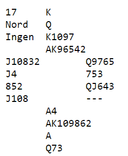 Selv etter en litt forsiktig gjenmelding 2 kløver bør kanskje N/S finne frem til storeslem?