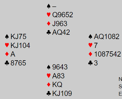 For N/S står 4 spar ganske enkelt, det er to hjertertapere og en kløvertaper (en kløver forsvinner fra syd på ruter ess).