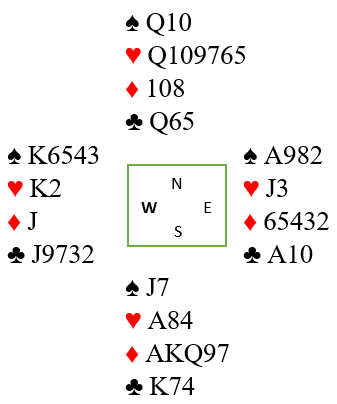 Dagens spill er fra en lagturnering på søndag. For å komme i riktig kontrakt må N/S ha bra avtaler. Hvis ikke kan de ende i en kontrakt som forutsetter flaks, men har visse sjanser. Selv om flaksen er på N/S sin side i første omgang er det litt mer å tenke på. Ta først meldeprøven syd fikk.