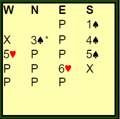 Makkers 3 spar er sperremelding. Kan makker ha særlig mye mer enn et par sparhonnører? Neppe, motparten har tross alt i full fart meldt slem.