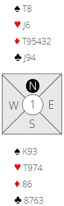 Noen spill gir avgjort ingen god følelse etterpå. Men det sitte i turneringbridge likt ved alle bord og det gjør at resultatene jevner seg ut. Men ikke alltid selvfølgelig! Eksempel fra spillingen tirsdag. Jeg hadde en beskjeden honørstyrke men lang hjerterfarge og systemet vårt gir da med tilpasning klare fordeler. Vest giver og alle i faresonen.