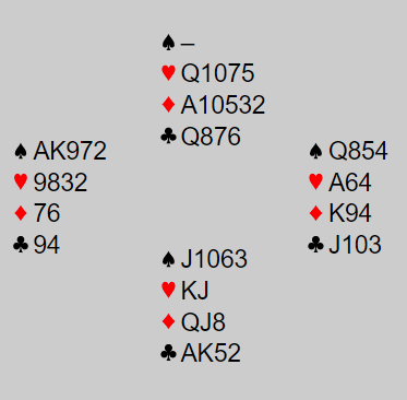 I "finalekampen" gikk en rekke spill i favør av MED FOKUS PÅ IDA, men de fleste gevinstspillene var ensifrede i IMP. Her er ett hvor nord fikk en meldeprøve.
