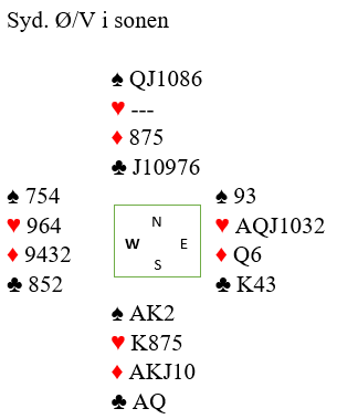 Du bør underveis trumfe kløver. Det gir ikke ekstra stikk (trumfer på den lange trumfhånden), men av og til sitter K-J tredje i kløver og tieren blir ett ekstra stikk. Det skjedde ikke, og det kokte ned til et sparvalg. En spar kan jo kastes fra øst på ut ruter.