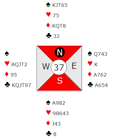 Her var det ikke lett å finne frem til toppkontrakten som er 7 kløver Ø/V.