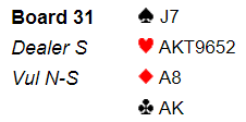 Nord tok her en sjanse på at makker hadde litt i tilpasning å by på, uten det er dette fort minst 4 bet og dermed dårlig butikk. Men her ar fire kort støtte i trumf og veldig gunstig beholdning i kløver det sitsen stemte prefekt for Nord ble «stampen» god butikk.Men over 4 hjerter burde jeg passet. Da vil Jan temmelig sikkert melde 5 ruter. Den kontrakten vinnes enkelt.