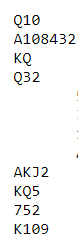 Fra nord kom en trumf i utspill, og Helgemo tok de tre store trumfene. Da oppdaget han at 3 kløveråpneren hadde fire trumf, og derfor sannsynligvis 4-6 i hjerter og kløver, for nord må nesten ha dobbel kløver siden han sa 4 kløver. Det ser mørkt ut, for det er en trumftaper, og med spar konge bak som er veldig sannsynlig er det to spartapere samt en rutertaper, sannsynligvis fire stikk til N/S og i så fall en bet. Har du fantasi nok til å se noen mulighet om det sitter som det sannsyligvis gjør, begge de sorte kongene bak?