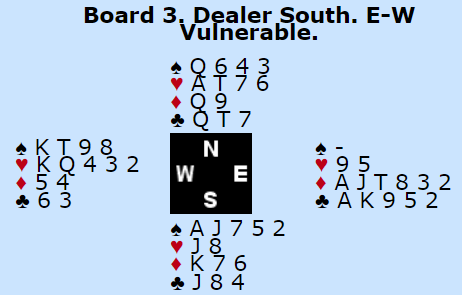 Mot østs 5 ruter spilte syd ut spar ess som ble stjålet og vest sin konge godspilt. Det kostet egentlig ingenting for forsvaret, og det var langt frem til elleve stikk. Men det satt snilt, og melder man hardt bør det gjerne gjøre det samt at det må spilles godt.