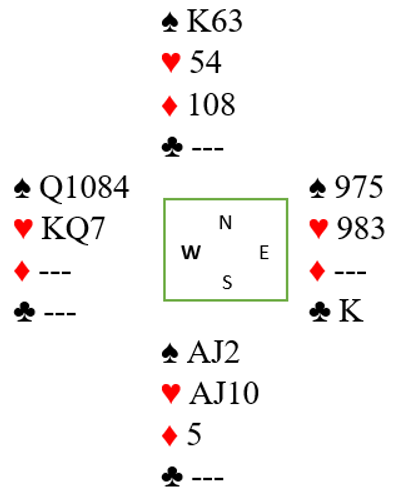 La oss si majorhonnørene sitter så ugunstig som mulig, for eksempel ser hele spillet slik ut: