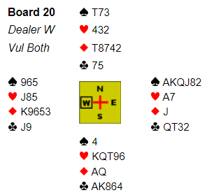 Ved det bordet ble det også tre bet i 5 hjerter, men altså doblet: Ø/V +800 og 11 IMP til vinnerlaget i denne jevne finalekampen som ble vunnet med omtrent den marginen.
