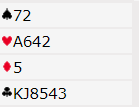 Her er et eksempel fra en stor turnering i helgen. Syd satt med disse kortene med vest som giver og ingen i sonen:
