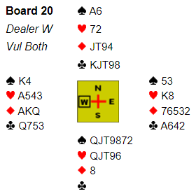 Både spar og ruter satt OK imot, men kan det ikke 6 spar betes? Jørn Fjæstad klarte å velge hj 5 og dermed fikk han og Gunnar Pettersen to stikk i den fargen, bet altså! +8 i stedet for -6 som pådytt betydde.