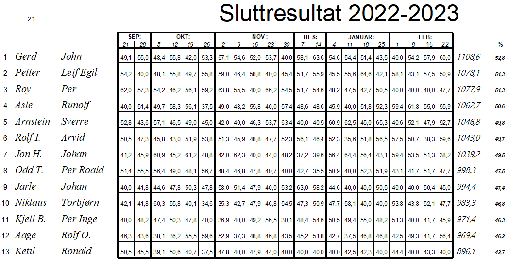 1.Roar Johansen- Ove Gundersen + 23,6