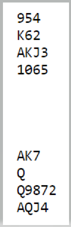 Hvis kløver sitter 3-3 med kongen i saksen er det tolv enkle. Hvis det sitter 4-2 er kongen singel eller dobbel foran den sjansen som utpeker seg. sitter det slik må ikke tieren spilles, da vokser vests firekorts beholdning til stikk.