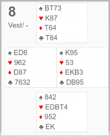 Begge parene klarte via godspilling av sparen å vinne alle stikkene. De andre stoppet i utgang