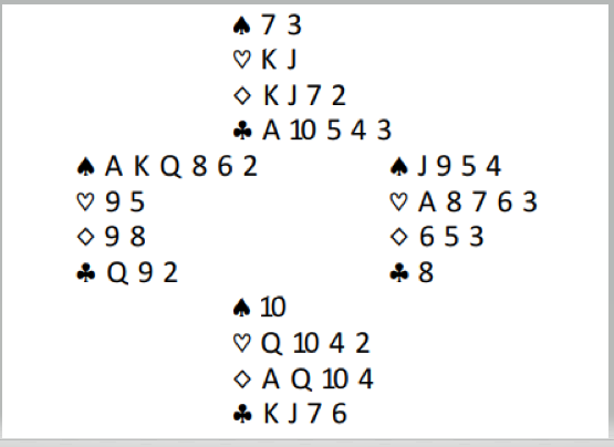 Det vet du ikke, men det koster ikke noe å ta sidestikk for å forsøke å finne ut mer om fordelingen. Så de to hjerterstikkene tas. Allerede i tredje hjerterrunde er vest fri for hjerter og kaster en spar. Hvordan tror du vest og østs fordeling er?