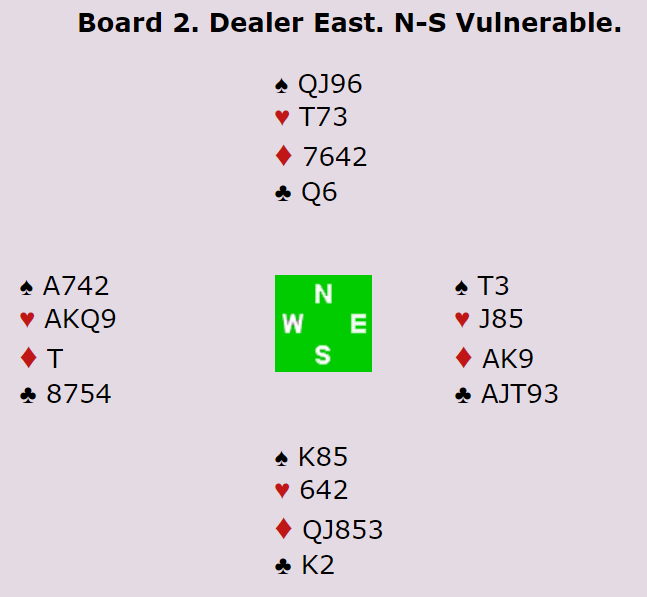 Noe over halvparten av N/S parene meldte og vant lilleslem. Noen veldig få gikk bet i 6 spar, og ved et par bord ble det bet i 7 spar. Resten var i uganger.