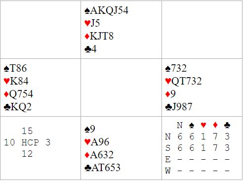Hva som ville skjedd med hjerter ut vites ikke, for De Botton noterte +920 etter kløverutspill. Ved det andre bordet spilte N/S 4 spar med tolv stikk, 10 IMP til vinnerlaget.