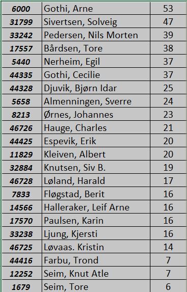8.Tom Gjøs- Lars Helgesen +6