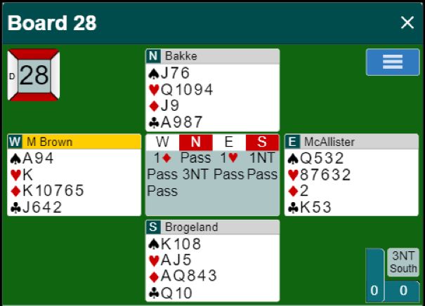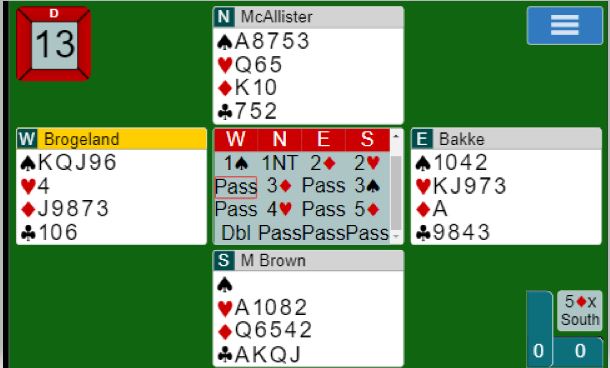 Selv hadde jeg gleden av å spille med Kay Robert Brastad som spilte solid og godt. Det blir dog for alle noen småproblemer spesielt i meldingene når man har en helt ny makker og ikke har fått avtalt så mye, men Kay Robert gjorde det i alle fall stort sett enkelt for meg.