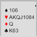 Du sitter syd og hører 1 ruter fra makker, og over ditt svar 1 hjerter sier makker 1NT som viser 12 (11) -14 balanserte. Hva melder du? Kan det stå slem?