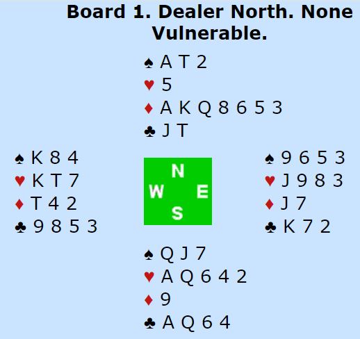 Det går an å smelle til med 3NT som etter 1 over 1 bør bety solid ruterfarge og litt her og der, for gode kort til gjenmeldingen 3 ruter. Men for den meldingen burde kanskje nord ha litt mer, for eksempel kløver konge i stedet for knekten.