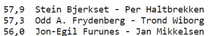 63 par spilte NM Monrad par, og disse tre parene tok gull, sølg ov bronse i den klassen: