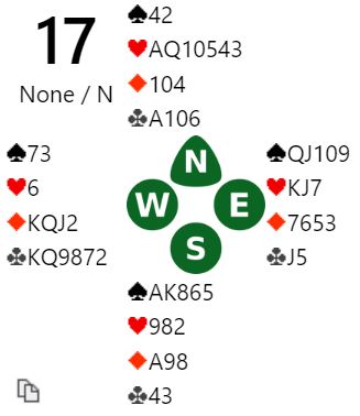 Vinnerparet Heiberg-Evenstad - Lund meldte 1NT-3NT, og Lund ble spillefører. I den kontrakten kom ruter dame ut noen steder, og spillefører tok raskt for ruter konge, fem hjerterstikk og seks kløverstikk, +490 for tolv stikk. Andre steder, bla. annet mot vinnerparet fant vest ruter ess i utspill, og da hadde utspilleren sjansen. Skift til spar ess og mer spar gjør at de kan ta syv sparstikk, dvs. fire bet i 3NT stedet for tolv stikk!