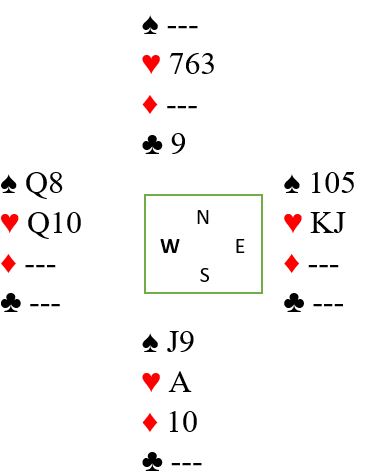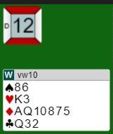 Vest har bare 11 HP og har åpnet. Men i slike situasjoner spiller det ikke så stor rolle hvor mange poeng man har. Det som er viktig er hvilke honnører man har, dvs. nøkkelkort som kan være viktig for makker.
