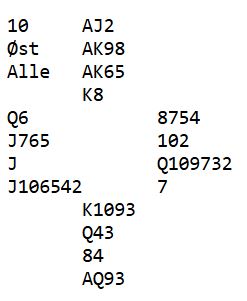Hva er beste meldesekvens med disse kortene? Syd er giver og passer, og Ø/V får melde i fred)