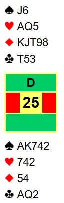 Omtrent på motsatt side av jordkloden (Australia) pågår fortsatt den store festivalen Gold Coast Congress. Det spilles nå en tre-dagers lagkvalik før det blir to dager med sluttspill. Før det var det parturneringer med totalt ca. 800 par (!) på startstreken. I Open spilte 236 par som etter kvaliken ble inndelt i A-finale, B, C osv, med 28 par i hver pulje. Min unge makker Leon Meier (21) og jeg kom oss til A-finalen og spilte jevnt, i alle fall om en ser på prosentscoren i de fem sesjonene. Det endte med 3.plass etter at vi var oppe og luktet litt på teten i siste sesjon, men desverre ikke helt klarte å komme oss forbi to par.