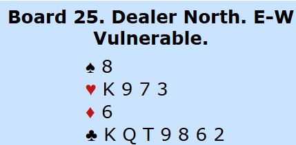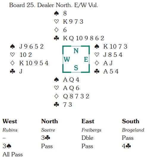 Ved en god del bord åpnet nord med 1 kløver, syd meldte hjerter (eller ruter) og nord sa 1NT, 12 (11)-14 før syd avsluttet meldingene med 3NT. Noen steder ble syd spillefører i 3NT for eksempel etter "kløverføringer".
