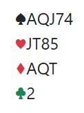 Den doblede kontrakten var helt håpløs for spillefører. Det kan nesten se ut som det vil bli kun et par stikk, for hjerter ess og ett trumfstikk for den trettende ruteren. Men med verdiene i majorfargene måtte det etter hvert bli ett stikk til. Likevel fire doblede bet i kontrakt på ett-trinnet i faresonen, N/S +1100!