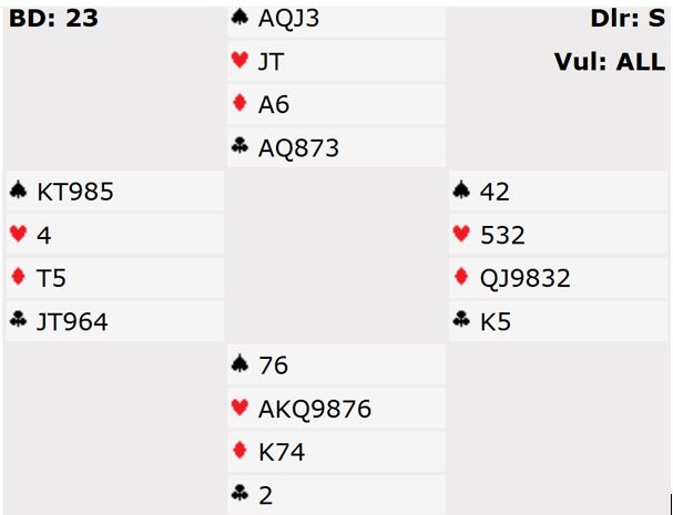 Eventyrlig oppslutning onsdag 28. januar, med hele 24 par (12 fulle bord). Denne kvelden spilte vi også med i NBFs Simultan-turneringer, og de beste (scratch) ble følgende 3 par: 1. Espen & Terje (68,3%), 2. Clas & Trond (63,1%), 3. Thore & Ken Are (62,0%). Med denne kjempescoren kom Espen & Terje helt opp på 2. plass på landsbasis, blant alle de 239 parene. Gratulerer!