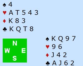 Nord fikk seg et sjokk etter å ha spilt mer kløver i andre stikk. Det mest utenkelige var sannheten, Geir hadde i sparkontrakt lasjert den utspilte kløverkongen med singelton kløver på hånden! Da nord spilte kløver i andre stikk ble knekten lagt, og en hjerter forsvant fra hånden. Etter et par trumfrunder ga kløver ess avkast for den andre hjerteren, og deretter fikk N/S kun to ruterstikk: Ø/V +620.
